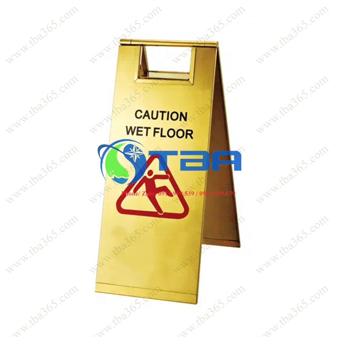 Bảng cảnh báo INOX MẠ VÀNG cho nhà hàng khách sạn được thiết kế theo kiểu chữ A đặt sàn, dễ dàng gấp gọn, di chuyển tiện lợi. Toàn bộ khung được gia công từ inox 304 mạ vàng bóng, tạo nên vẻ ngoài sang trọng, chuyên nghiệp, phù hợp với không gian nhà hàng, khách sạn, trung tâm hội nghị hay khu thương mại cao cấp. Màu vàng ánh kim giúp nâng tầm không gian, đồng thời thu hút sự chú ý từ xa, đảm bảo công năng cảnh báo hiệu quả.