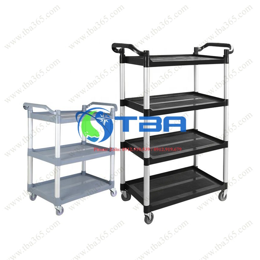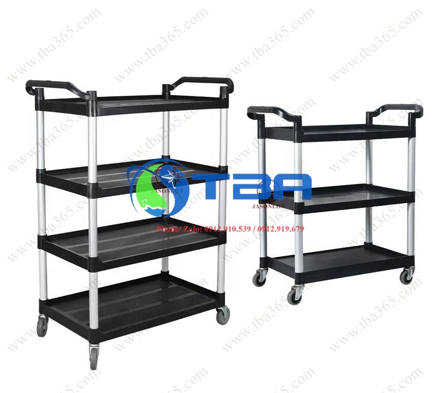 Xe đẩy phục vụ nhà hàng 04 tầng nhựa cao cấp Á CHÂU